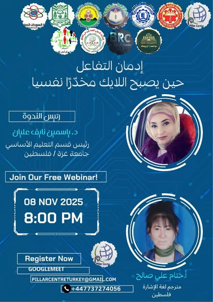 #تشارك مؤسسة BRC العلمية الدولية مع مركز بيلر للبحث العلمي تركيا_ بريطانيا ومجموعة مميزة من الجامعات العربية الرصينة باقامة وتنظيم الندوة العلمية الدولية “إدمان التفاعل (Reaction Addiction)_ حين يصبح “اللايك” مخدّرًا نفسيًا”… وتدعوكم للحضور بفعالياتها..