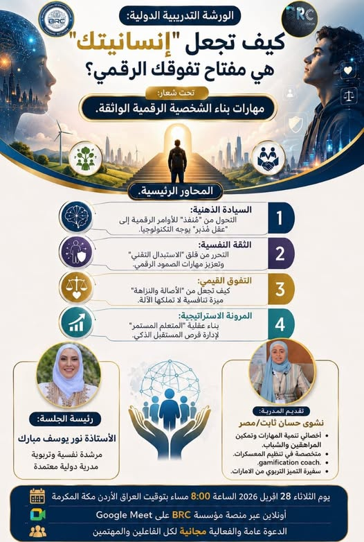 الورشة التدريبية الدولية : كيف تجعل “إنسانيتك” هي مفتاح تفوقك الرقمي؟.. ​ 28 ابريل 2026..