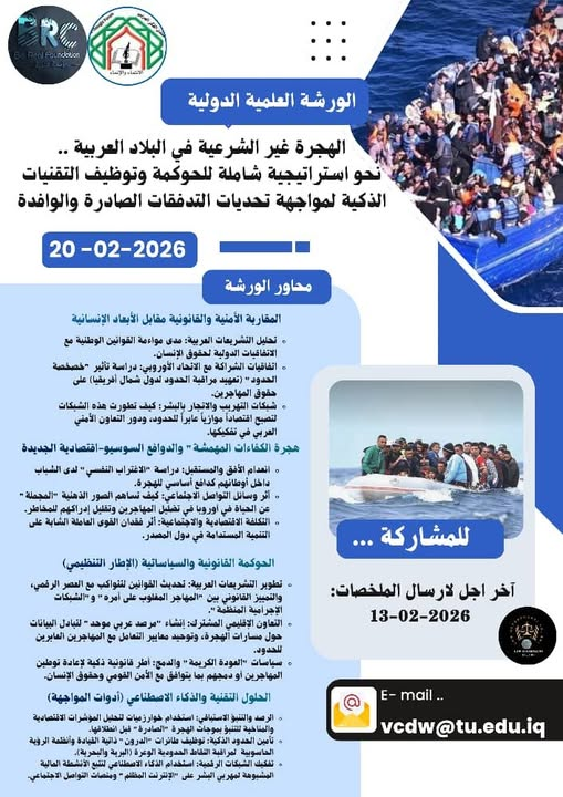 الورشة العلمية الدولية: (الهجرة غير الشرعية في البلاد العربية… نحو استراتيجية شاملة للحوكمة وتوظيف التقنيات الذكية لمواجهة تحديات التدفقات الصادرة والوافدة)…