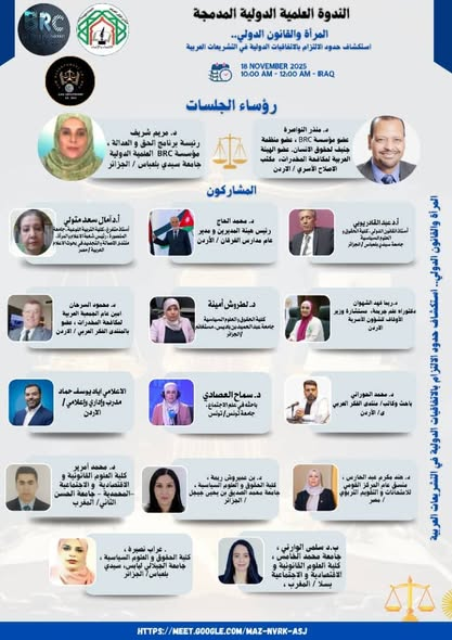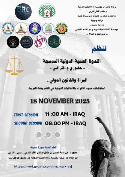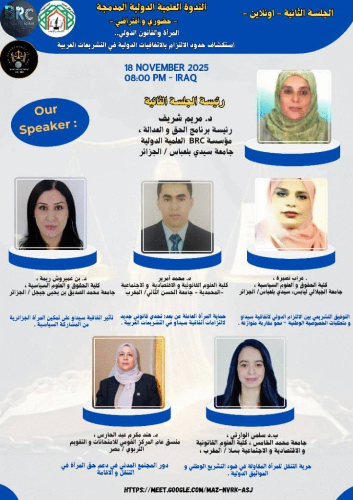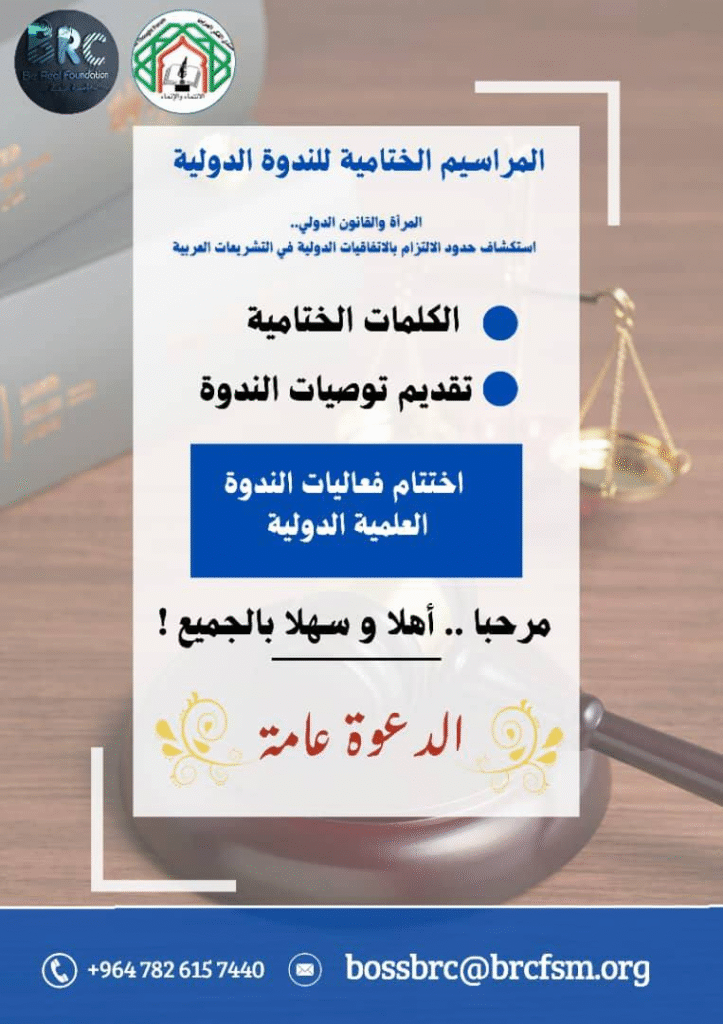 يسرّ “مؤسسة BRC العلمية الدولية” أن تعلن عن إصدار بروشور برنامج الندوة العلمية الدولية المدمجة : “المرأة والقانون الدولي: استكشاف حدود الالتزام بالاتفاقيات الدولية في التشريعات العربية”…